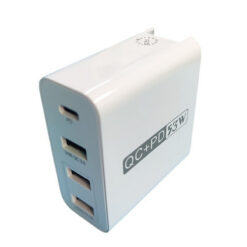 This 4-port wall charger has a total power output of 53W, with 1 PD 20W fast charge port, 1 QC 3.0 quick charge port, and 2 standard USB outputs. It’s perfect for charging multiple devices simultaneously with one compact charger. Its portable design fits easily into your pocket, suitcase, or backpack without scratching other items. Compatible with Phones and many other USB-powered devices. 2.55905511′ L x 1.18110236′ W x 2.36220472′ H