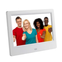 The screen provides superior viewing from all angles. Our products are packaged in an elegant box, ideal for gifting. This digital photo frame a unique image preview feature for easy selection. It adjusts to portrait or landscape automatically and allows for remote file deletion. The frame can play photos in sequence or randomly with slideshow effects, and you can customize settings like timing and transitions. Discover extra features such as an alarm clock, calendar, picture zoom, and more. 10.43′ L x 7.24′ W x 7.24′ H