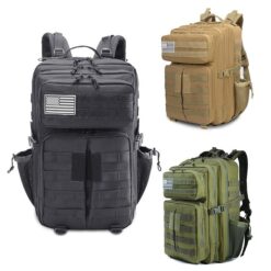 This backpack is amazing! You can use it every day for school, carry on for travel or a military tactical assault rucksack. It is completely versatile for any backpack situation. There’s plenty of compartments to store and organize your life. The pack holds 3 days worth of clothes along with toiletries and other essential gear. A solid multifunctional backpack for combat, range, survival or hunting. 20″ L x 12″ W x 12″ H