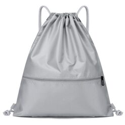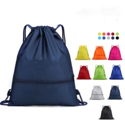 This is a drawstring bag made of durable 210D polyester. It has a headphone jack and an additional interlayer that can be opened with a zipper. The material is strong and durable, and this drawstring bag has many uses. The drawstring bag is a perfect handout for company picnic, travel, yoga, grand openings, etc. 16 3/4″ L x 13 3/4″ W x 13 3/4″ H