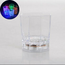 The LED Lighted Cup lights up when liquid is added, creating a fun atmosphere. The cup has red, blue, yellow, and green lights that alternate on their own. The battery is replaceable. For questions about packaging, inventory, or timing. 2 1/2′ L x 3 3/4′ W x 7′ H