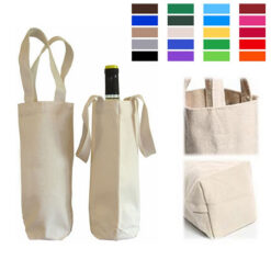 Quantity: 200 500 1,000 3,000 10,000 Your Price (each): $3.84 $3.77 $3.63 $3.53 $2.86 This 12oz cotton wine tote exudes timeless sophistication with fabric-matched webbed handles for easy carrying. Made from 100% biodegradable, post-industrial recycled material, this eco-friendly accessory showcases your commitment to sustainability while providing unmatched protection for your wine bottle. 3.5′ L x 10.6′ W x 3.5′ H