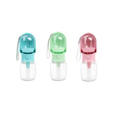This 10oz (300ml) pet water bottle holds water and food for small pets on the go. Compact and portable, it fits in your pocket or backpack. Ideal for hiking, walking, travel, and outdoor activities with your furry friends. 8.69″ L x 3″ W x 3″ H
