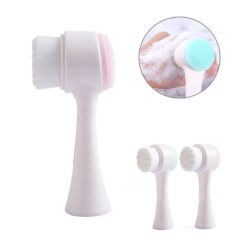 Facial brush with soft bristles and silicone for gentle exfoliation, pulsating massage, and deep cleansing. Ergonomic handle for easy grip. Double-sided design with soft bristles for cleansing and silicone for exfoliating. Enlarged brush head for deep cleansing, blackhead removal, and healthy skin. 5 1/8″ L x 2 3/8″ W x 1 6/8″ H