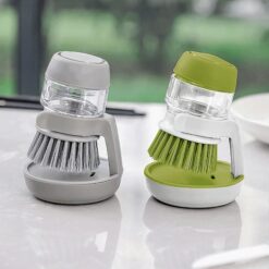 A good hand in the kitchen.Small,soft and durable bristles with soap dispensers easily wipe off food stuck to plates,pans,dishes,kitchenware, and cutting boards,etc.Effectively reduce hand and soap liquid direct contact,reduce the stimulation of detergent hand.The brush is soft and resistant to high temperature,does not damage the non stick pan coating,washes away the grease and dirt,and the soap pool is transparent with clear display of soap quantity.The size of the palm,grip,gently force.Curved bristles fit well with curved appliances.Clean every corner,turn the palm counterclockwise to brush the top half,open the lid,fill the body with soap,lock clockwise.Press the button on it and it sprays soap. 3.15″ L x 2.05″ W x 2.05″ H