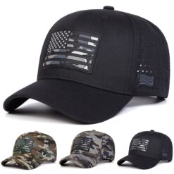 Crafted from durable polyester, this baseball cap is perfect for any active lifestyle. The outer crown and brim are designed to withstand rigorous activities, while laser-perforated panels ensure optimal breathability. A specially tested sweatband lining keeps your head dry and comfortable all day long. The cap features a high-quality flag rubber patch with expert stitching for added durability. Whether you’re golfing, fishing, running, or working out, this stylish cap is the perfect accessory. With a convenient snapback adjustment for a custom fit, it offers both fashion and comfort. Designed with a medium-depth fit and a flexible curved brim, it is suitable for both men and women. Made from premium fabric, this cap is a must-have for anyone looking for style and functionality in their headwear. 9.45″ L x 8.27″ W x 4.72″ H