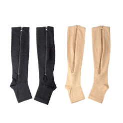 Quantity: 200 500 1,000 2,000 3,000 Your Price (each): $6.86 $6.55 $6.26 $5.95 $4.82 Experience the luxury of fine yarns creating a sheer look and providing all-day comfort in our compression socks. Crafted with medical-grade fabrics for durability, they promote blood circulation and relieve tired, aching legs. With open toe styles and smooth zippers, they are easy to put on and take off. The wide cuff ensures a snug fit that stays in place all day, while the smooth-knit top provides ultimate comfort. Perfect for anyone in need of support and relief. 18 2/4′ L x 4 1/2′ W