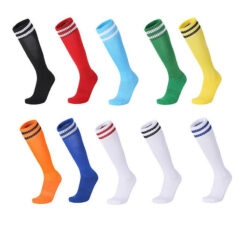 Our soccer team socks are one-size-fits-all with elastic for a comfortable fit. Available in multiple colors to match any outfit, these knee-high socks are designed for soccer players, offering comfort and support. They feature cushioning on the footbed for shock absorption and compression to keep them in place. Perfect for any sport, these long socks are ideal for athletes of all levels. Great for team uniforms or casual wear, they make a perfect gift choice. 9 7/8′ L x 5 4/8′ W x 1′ H