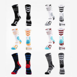Check out our innovative men’s crew socks for ultimate comfort and performance. Features include moisture-wicking technology, air-circulating ventilation, and breathable mesh design for optimal comfort. The anti-skid bottom and non-slip texture offer great grip, while cushioning and thickened areas provide extra support. Top elastic cuffs and seamless design ensure a secure fit with minimal toe discomfort. Available in vibrant colors, perfect for high-impact activities like basketball. 6 6/8′ L x 8 5/8′ W x 3 1/8′ H