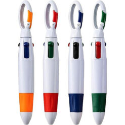 - Retractable 4-in-1 Multi-Colored Ink Pen with Carabiner Clip $0.00