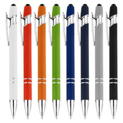 Quantity: 300 20,000 40,000 50,000 100,000 Your Price (each): $1.12 $1.03 $0.98 $0.88 $0.77 Help your customers and supporters get the most from their note-taking and their electronic devices with this 3-in-1 ballpoint pen. This ABS plastic pen has a shapely design that feels great in your hand with a handy metal pocket clip. The design also features an LED light, stylus tip and colorful accents. A great gift or giveaway that’s sure to resonate with your tech-obsessed customers and supporters. 5.5′ L x 0.6′ W