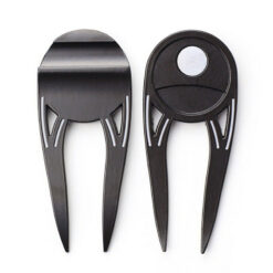 Hit a hole in one with this handy divot repair tool for your next marketing campaign! This multi-function golf accessory is made of stainless steel and ABS. It comes with magnetic ball markers, groove cleaner and club rest. Prongs snap into action at the push of a button. Makes a great promotional gift for country clubs, sporting goods stores and golfing events! 4.3′ L x 0.98′ W