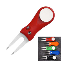 Quantity: 500 1,000 2,000 4,000 8,000 Your Price (each): $2.74 $2.65 $2.55 $2.21 $2.00 Ergonomic Design makes opening and closing fast and easy. Super Strong Magnet holds the ball marker tight so it won’t fall off. Thin Forks reduce damage to the greens and make repairs easier. Several Classic golf divot tool colors. 4.3′ L x 0.9′ W