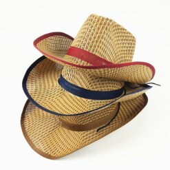 Discover the perfect blend of style and functionality with our collection of straw cowboy hats for both men and women. Crafted from natural paper grass, these hats are lightweight, breathable, and oh-so comfortable – making them ideal for outdoor activities and cowboy-themed parties. The versatile design of our western straw cowboy hat makes it suitable for all genders, while our woven women’s cowboy hats are must-have accessories for sun protection. With a wide brim that effectively shields your face and neck from harmful UV rays, you can enjoy your favorite outdoor pastimes worry-free. Cleaning and maintaining these hats is a breeze – simply wipe them down with a damp cloth and let them air dry naturally. Elevate your cowboy style with our straw cowboy hats and stay stylish and protected wherever the trail may lead you. 13.39″ L x 14.96″ W