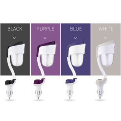 This portable USB car humidifier increases air humidity, reduces dust, and bacteria. It rotates 180 degrees for full humidification and can be used with aroma oils. It has an auto-off feature after 2 hours, a USB car charger socket, and a 50ml water capacity. Made of ABS, PP, and electronic components, it operates at DC 12V, 130-150mA current, and 1.5-3.5W power. The spray amount is 20-30ml/h, and it weighs 90g (1 USB) or 91g (2 USB). Available in black, white, purple, and blue. 2.3″ L x 2.7″ W x 8.27″ H