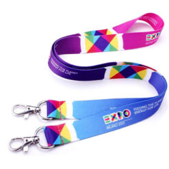 Polyester lanyard with metal bulldog clip. PMS available for product color and imprint. Material: Polyester. 36′ L x 1′ W