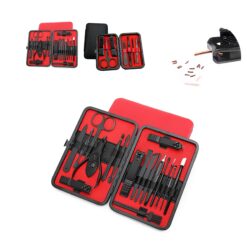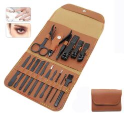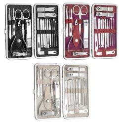 Indulge in luxury self-care with our premium manicure kit featuring 18 essential tools for your hands, face, and feet. This comprehensive set is designed to meet all your manicure and pedicure needs, ensuring your nails and skin are always looking and feeling their best. Elevate your beauty routine with this complete set and enjoy professional-quality care from the comfort of your own home. 5 7/8″ L x 3 6/8″ W x 1″ H
