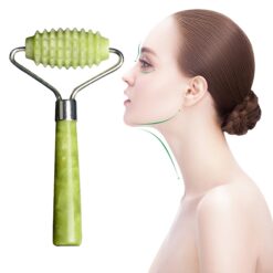 Jade roller eliminates muscle tension, smooths fine lines, reduces dark circles, and improves skin health. Its silent design and compact size make it suitable for use on face, neck, arms, back, or legs. Keeping it in the refrigerator enhances the experience. This trendy skincare product helps with anti-aging, moisturizes the skin, prevents acne, and gives a youthful, flawless appearance while relieving daily fatigue. 6 6/8″ L x 2 3/8″ W