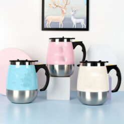 This Double-Wall vacuum Coffee Mug offers excellent temperature protection, keeping your drink warm or cold for hours. Made of food grade stainless steel, it is durable and easy to clean. Electro polished on the inside to prevent rust, with a sweat-proof design to keep your hands dry. Capacity of 450ml. 3.35′ L x 2.7′ W x 2.7′ H
