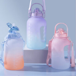 High-capacity wide-mouth plastic sports bottle, printed with motivational text and hourly markers. This 128-ounce container helps track daily hydration and encourages regular water intake. The transparent design allows clear visibility of consumption levels. Suitable for supporting objectives like muscle development, weight management, appetite moderation, and overall well-being. 0.6′ L x 0.5′ W x 0.5′ H