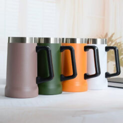 Made from durable stainless steel, this sleek mug has double wall insulation to keep your drinks at the perfect temperature. The wide C-shaped handle makes it easy to hold. Versatile and stylish, it’s perfect for coffee, juice, cocktails, hot chocolate, beer, tea, and more. Available in black or white, you can personalize it with your brand name, logo, or message. Elevate your drinking experience with this premium stainless steel mug. 0.5′ L x 0.5′ W x 0.5′ H