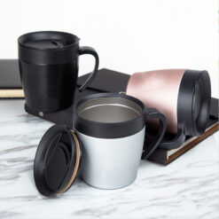 New and potential clients can picture themselves working with your brand when you advertise on this camera self-stirring mug! Made of food-grade silicone and stainless steel, it meets FDA requirements and features a self-stirring function. Recipients just add coffee or their favorite beverage and flip the switch (two AA batteries required, but not included). This fashionable and unique item is shaped like a camera lens, letting them show off their love of photography while enjoying their drink. It’s safe for hot or cold beverages and comes with a screw-on lid to prevent leaks while traveling. Add your logo to create a great promotional gift! 3.26′ L x 6.52′ W