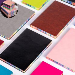 The multicolor Journal is a stunning piece with 80 sheets of cream colored paper, rainbow trims, and dark trims. It offers ample space for logos and brand messages, making it a perfect gift for conferences and seminars to showcase your brand’s style. 8.27″ L x 5.71″ W
