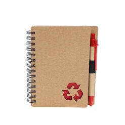 This Notebook has a recycled cardboard cover, 80 pages with a recycling symbol on each page, and a die-cut recycling symbol on the cover. It also contains an elastic pen loop with matching pen. Perfect for environmental campaigns or corporate events to promote a green brand. 6″ L x 7″ W