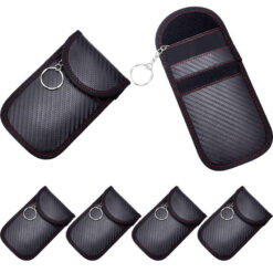 The car key signal shielding bag is made of high-quality carbon fiber texture material and two layers of shielding material. It can be used as both a signal-blocking box and a multifunctional card case. Effectively blocks all signals in the bag, preventing thieves from amplifying your key signal and entering your car. 3.15′ L x 5.12′ W