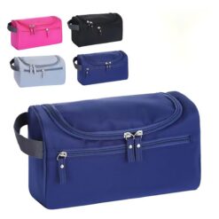 The perfect companion for your adventures. Made with durable, water-resistant material, multiple compartments, and sturdy zippers, it meets all your travel needs. Foldable for easy storage, it contains a metal hanging hook for bathroom convenience. Keep toiletries organized and secure on the go. Personalize with your logo for a unique touch. 8.66″ L x 6.7″ W x 2.75″ H