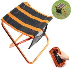Folding camping stool made of aluminum alloy bracket, most people are comfortable to sit. Comes with its own storage bag, easy to put into the backpack, portable and practical. 9.76″ L x 8.86″ W x 10.63″ H