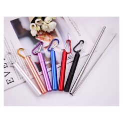 Make the switch to our Foldable Telescopic Straw Set to reduce plastic waste. This set contains a stainless steel straw, cleaning brush, durable casing, silicone tips, and carabiner for easy carrying. The 9-inch telescopic straw is compact, portable, and perfect for travel. It is made with FDA-approved non-toxic, non-BPA materials for safety. Join the sustainability movement and make a positive impact with every sip. Use the Foldable Telescopic Straw Set daily to help protect the planet. 4.92″ L x 0.79″ W