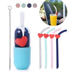 This collapsible eco-friendly silicone straw comes in a compact package for on-the-go use. It contains a cleaning brush and a detachable heart to secure it to your cup. The capsule case prevents leaks and is easy to carry. Ideal for tumblers, mugs, thermos, and travel bottles to reduce environmental impact. 3 1/2″ L x 1 1/2″ W