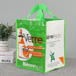Our full color custom print laminated woven shopper tote is made of 160GSM woven polypropylene, extremely durable and functional, simply wipe it clean as needed. Features with a large compartment and two webbed handles for carrying your favorite essentials insides. Large imprint area makes this laminated recycled shopper a great way to promoting your brand. Perfectly for tradeshows, fundraisers, stores and supermarkets and more. 15′ L x 12′ W x 6′ H