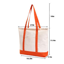 Quantity: 50 250 500 1,000 2,000 Your Price (each): $17.82 $13.52 $13.09 $12.79 $12.23 Experience luxury with our spacious zippered tote made from premium cotton canvas. This tote contains an exterior pocket, sturdy handles, and is perfect for shopping, picnics, errands, camping, and more. Versatile and eco-friendly, it is the perfect accessory for any occasion. Elevate your style and support sustainability with this elegant and reusable tote. 16.2′ L x 5.53′ W x 15.8′ H