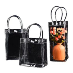 Introducing our stylish clear PVC tote bag, crafted from lightweight and waterproof material. it’s perfect for on-the-go. With a small button closure for security, this tote is versatile for logos and sizing. Say goodbye to plastic bags and hello to a fashionable, eco-friendly alternative for various occasions. 5.1′ L x 2.7′ W x 5.9′ H