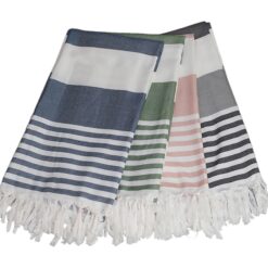 Elevate your vacation with a custom beach towel made from 100% microfiber polyester. Personalize it with printed stripes in multiple colors for a chic look that will make your brand shine. Add your logo, company name, or message for a lasting impression. Ideal for corporate giveaways, tradeshows, hotels, resorts, or beach businesses. This promotional towel guarantees a lasting impact. 27 1/2″ L x 55″ W