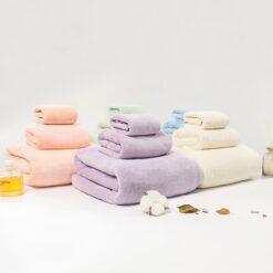 To maintain the quality of this towel, avoid using bleach, fabric softeners, and iron. Wash the towels separately to reduce lint. Available in white, pink, green, blue, and purple, each measuring 29 by 59 inches. Machine wash in warm water with a gentle detergent and tumble dry on low heat, ideally removing promptly. These towels are highly absorbent yet lightweight, providing a soft and gentle feel while efficiently soaking up moisture. 29 2/4″ L x 59″ W