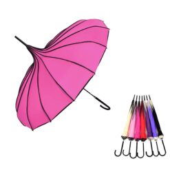 Custom old-fashioned umbrellas are popular for corporate gifts. Made of metal, pongee fabric, and leather, with a HOOK & LOOP strap and manual open. Victorian style umbrellas are great for gifts, ads, and events. 35.4″ L