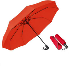 Our umbrella features an automatic button extended handle for one-handed use, 10 ribs for extra support, and upgraded aluminum alloy for a lighter and more durable build. The high-density pongee fabric offers better water repellency and quick drying. The hands-design with a c-shaped handle allows for multitasking. Stay protected from the wind with this cute and reversible umbrella. 54.33′ L x 54.33′ W x 54.33′ H