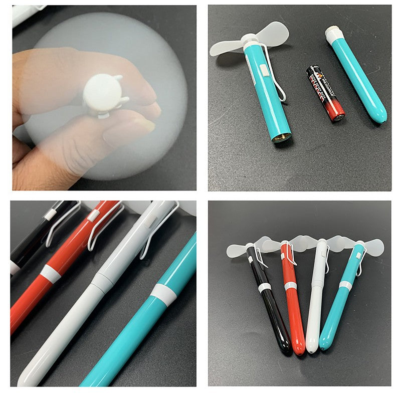 Stay cool with our aluminum alloy twist-action pen and fan combo. Customize it with your company details for a memorable giveaway at tradeshows, corporate events, parties, school events, or holidays. Keep comfortable with the breeze from the fan while promoting your brand. 6′ L x 2.2′ W