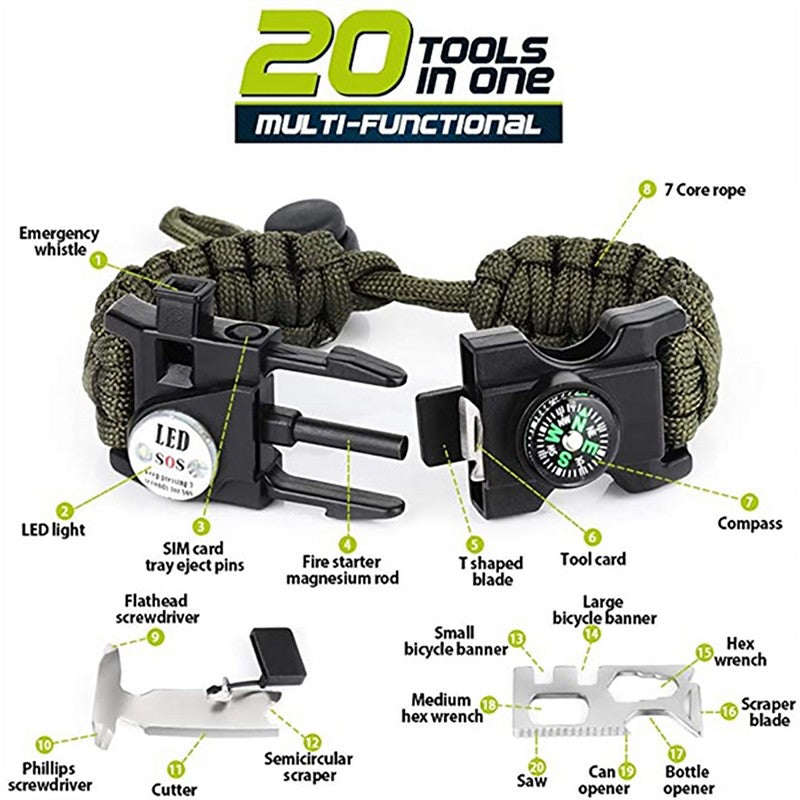 20-in-1 Adjustable Survival Bracelet