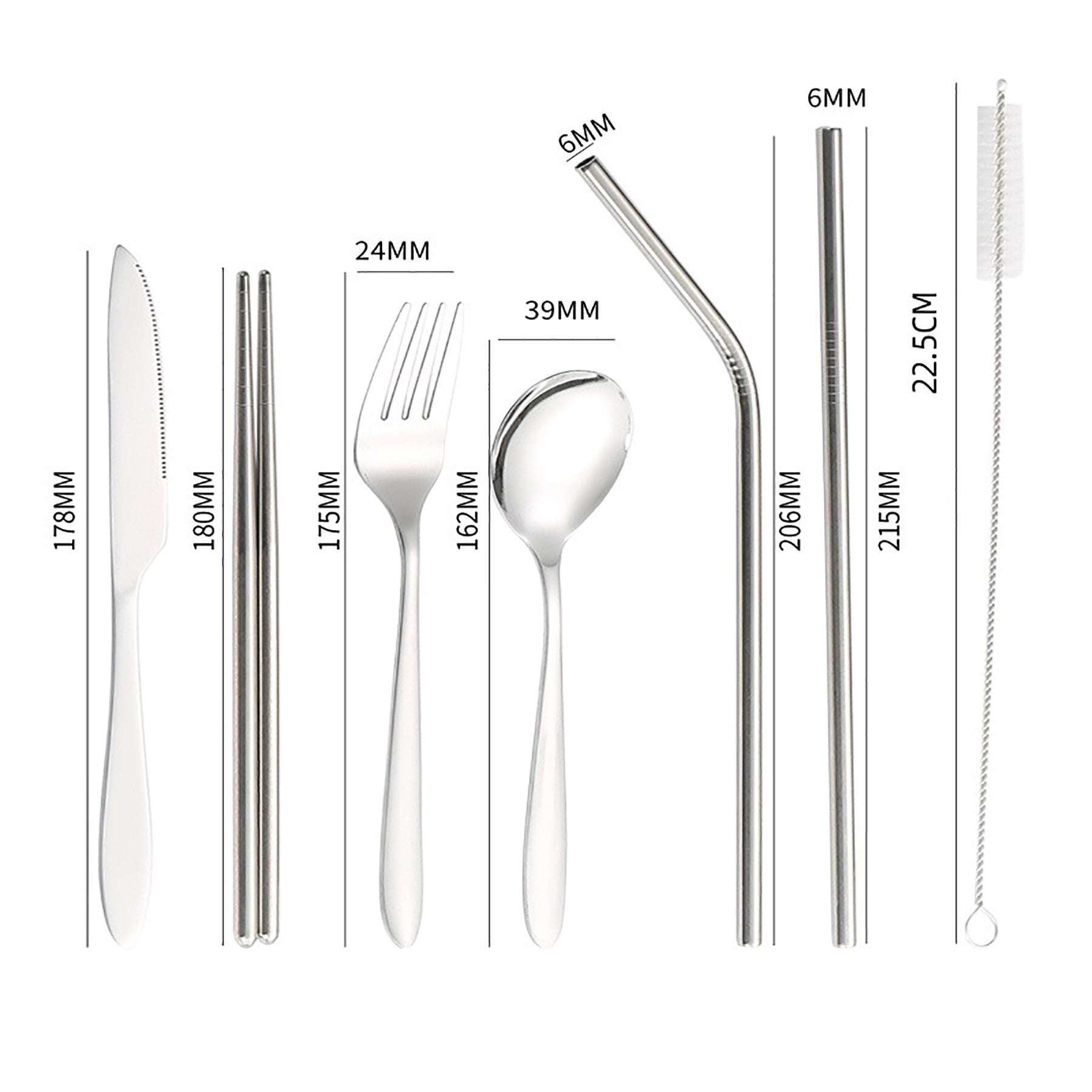 Get the ultimate convenience with our premium portable travel cutlery set made from top-of-the-line stainless steel. It has a sleek mirror finish, ergonomic design, and is reusable and durable for everyday use. Easy to clean and dishwasher-safe. Comes in a convenient bag for on-the-go use during outdoor adventures like travel, picnics, camping, hiking, and more. Perfect for office canteens too. Elevate your dining experience today! 3″ L x 9 1/2″ W