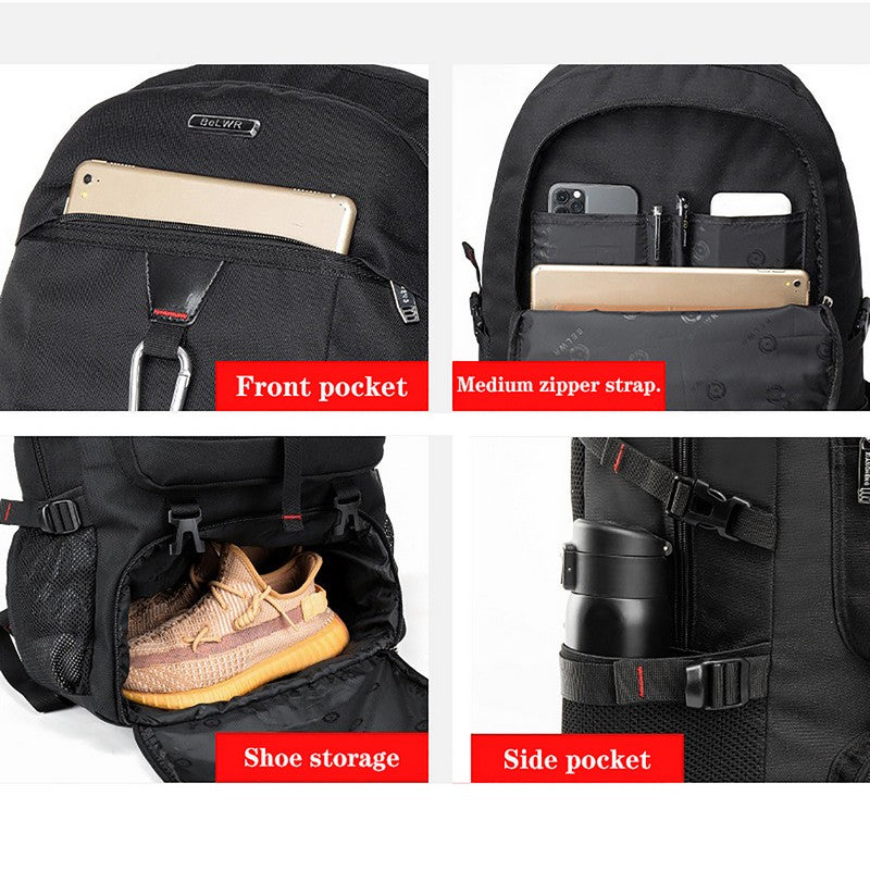 With a large capacity design, you can store clothes for one or two nights, outdoor items, camping, fishing equipment, and more. Use it for climbing, traveling, hiking and touring. It is light and expandable. It is suitable for camping, hiking, climbing, sports, travel, etc. 14.5669291′ L x 10.2362204′ W x 22.4409448′ H