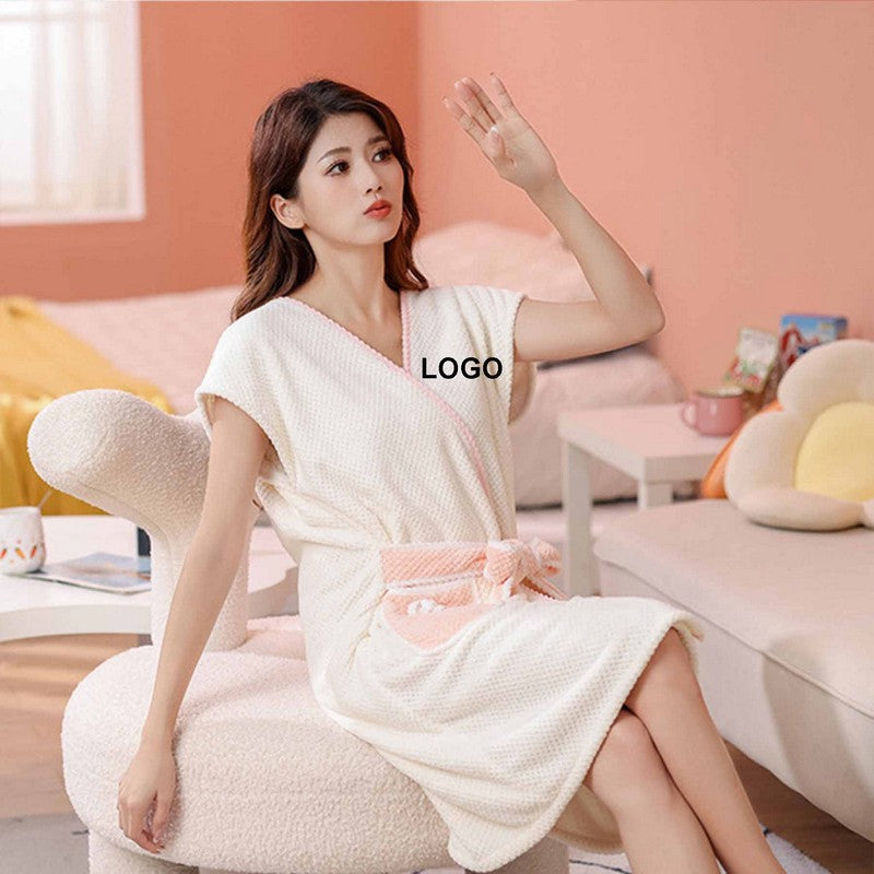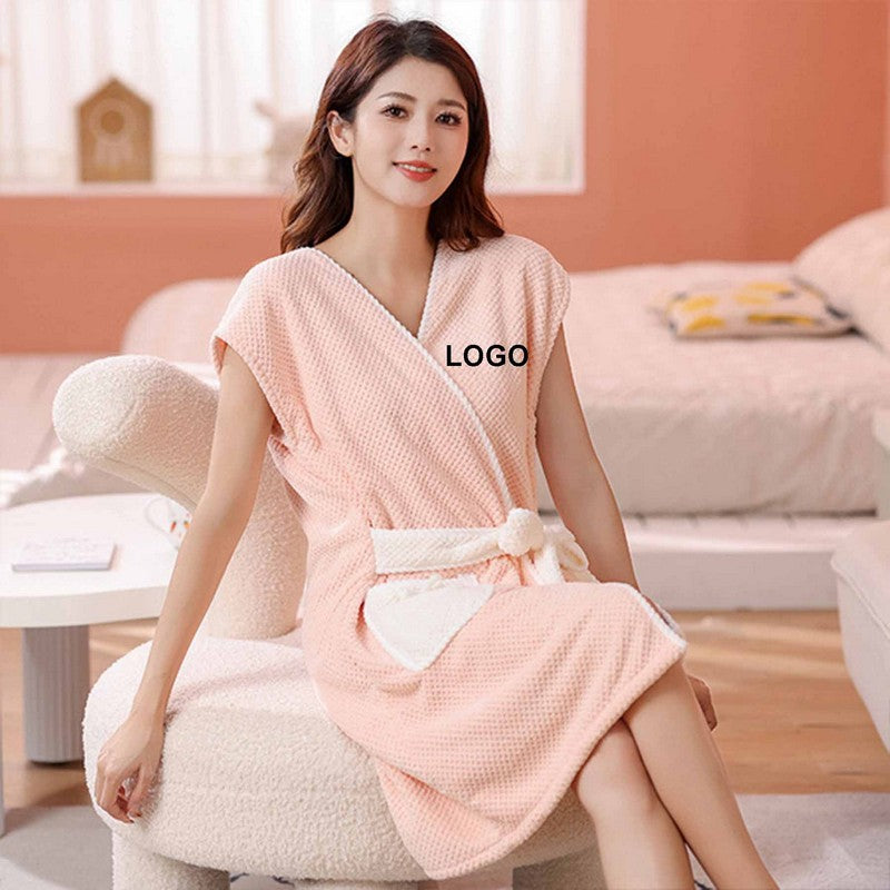 Absorbent Coral Velvet Short Sleeve Bathrobe