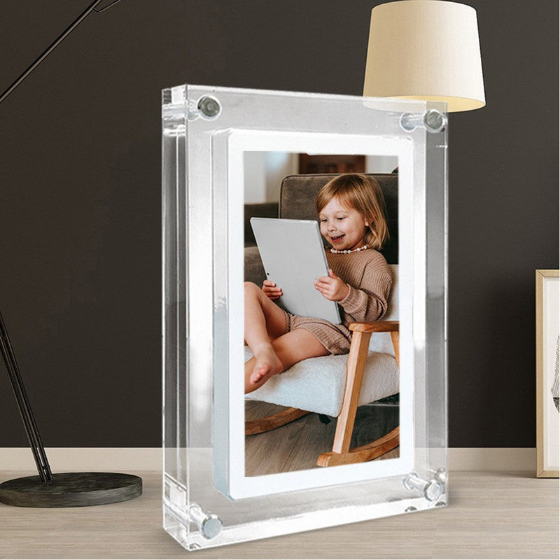 This WiFi digital photo frame is simple to configure and intuitive for users of any age. It offers a range of functions such as zoom, picture upload and removal, brightness adjustment, slideshow, and sleep mode. The frame also works with Alexa for voice-based operation, allowing you to share memories with family and friends remotely. It serves as a thoughtful gift option for many special moments. 11.22″ L x 7.72″ W x 7.72″ H