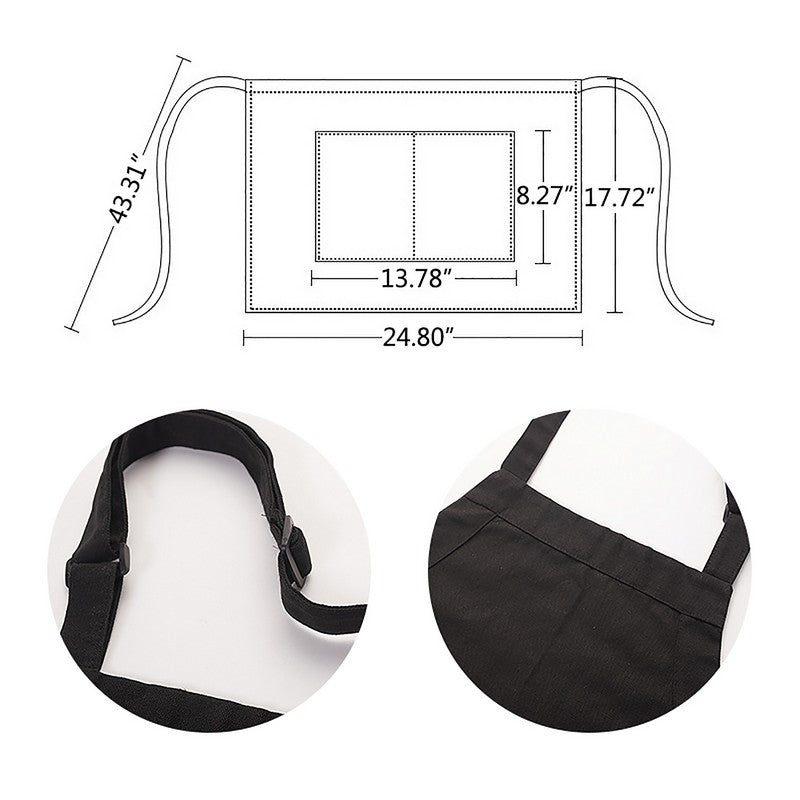 Our premium apron is made from high quality thickened canvas, combining luxury with functionality. Ideal for the kitchen or grill, it features a chest pocket, adjustable neck strap, and long ties for comfort. Easy to clean in the washing machine, this soft and stylish apron is perfect for keeping stains at bay. Custom printing options are also available for brand promotion. 31 4/8′ L x 27 4/8′ W