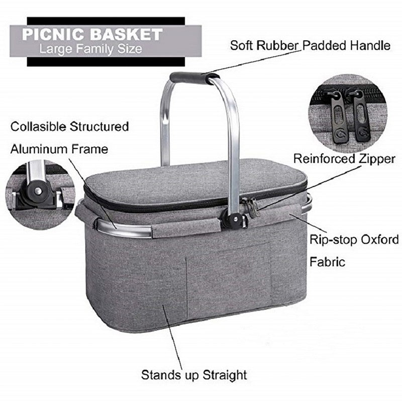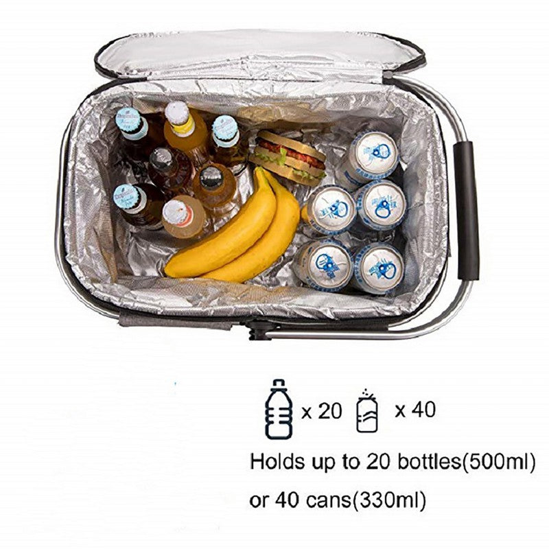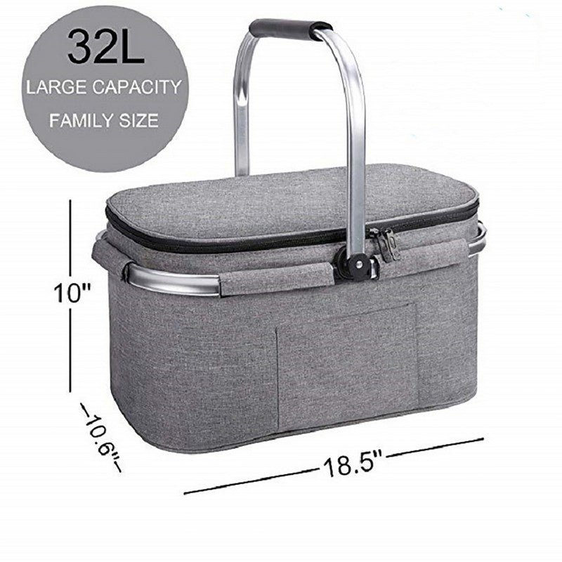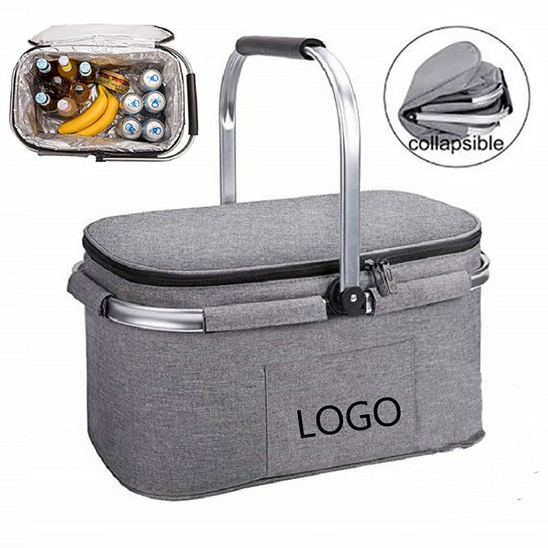 Elevate your outdoor dining with our premium insulated market basket! It features a leak-proof lining, zip closure, and durable polyester canvas with an aluminum frame. The padded handles ensure comfortable carrying and it conveniently folds flat for storage. With a 32L capacity, it’s perfect for picnics, beach trips, BBQs, and more. Add your logo for a personalized touch. Order yours today! 18.5′ L x 10.6′ W x 10′ H