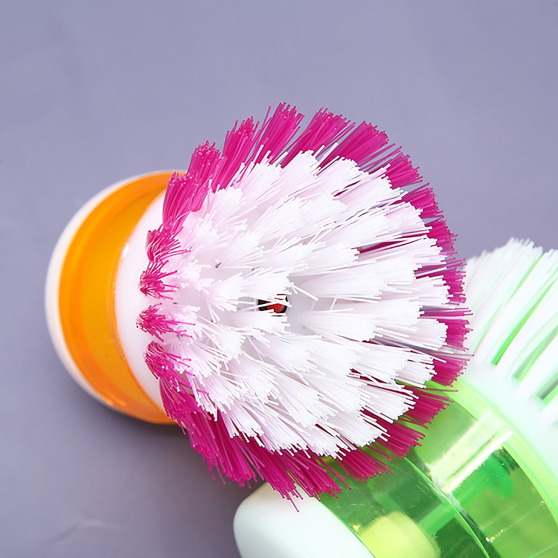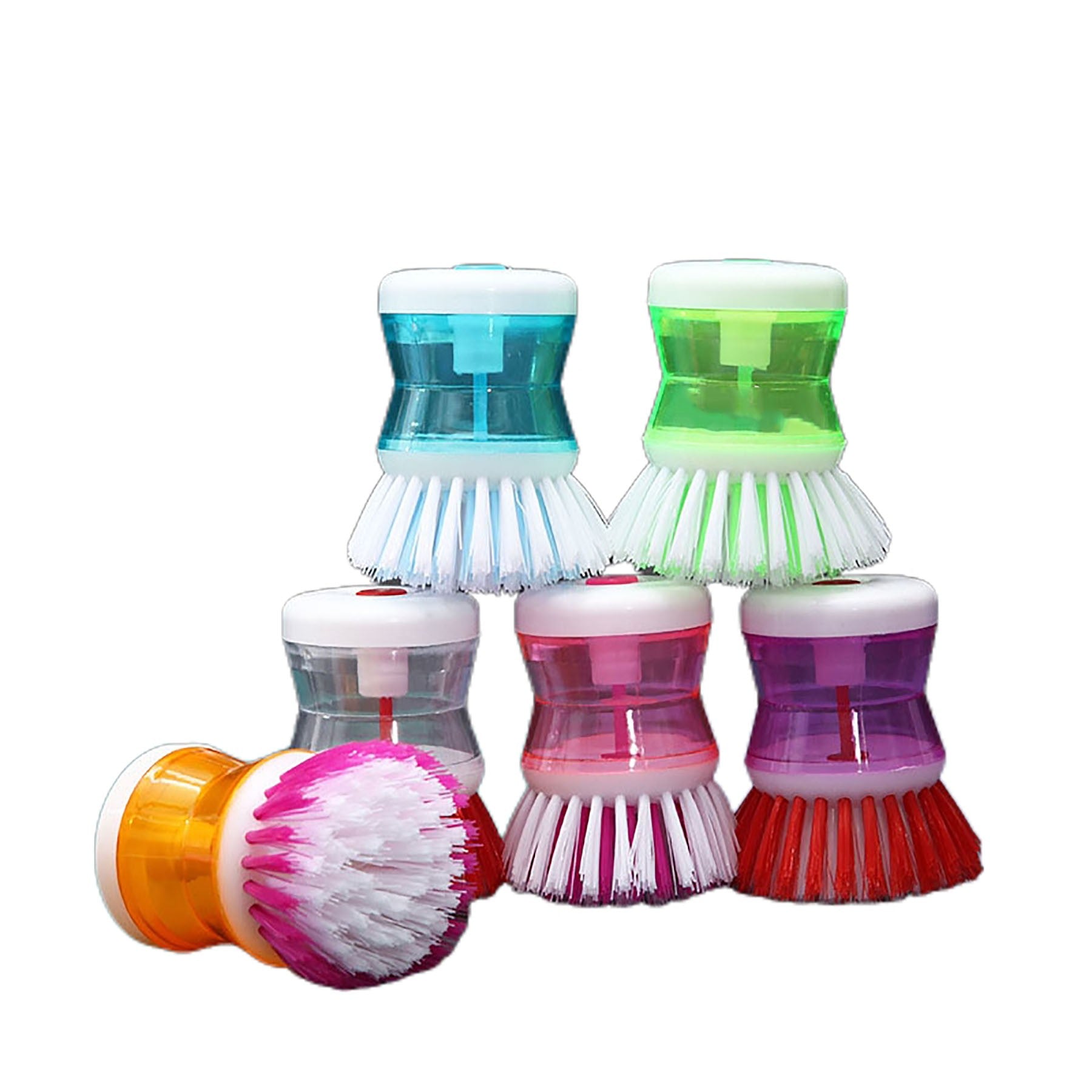 A good hand in the kitchen.Small,soft and durable bristles with soap dispensers easily wipe off food stuck to plates,pans,dishes,kitchenware, and cutting boards,etc.Effectively reduce hand and soap liquid direct contact,reduce the stimulation of detergent hand.The brush is soft and resistant to high temperature,does not damage the non stick pan coating,washes away the grease and dirt,and the soap pool is transparent with clear display of soap quantity.The size of the palm,grip,gently force.Curved bristles fit well with curved appliances.Clean every corner,turn the palm counterclockwise to brush the top half,open the lid,fill the body with soap,lock clockwise.Press the button on it and it sprays soap. 3.15″ L x 2.05″ W x 2.05″ H