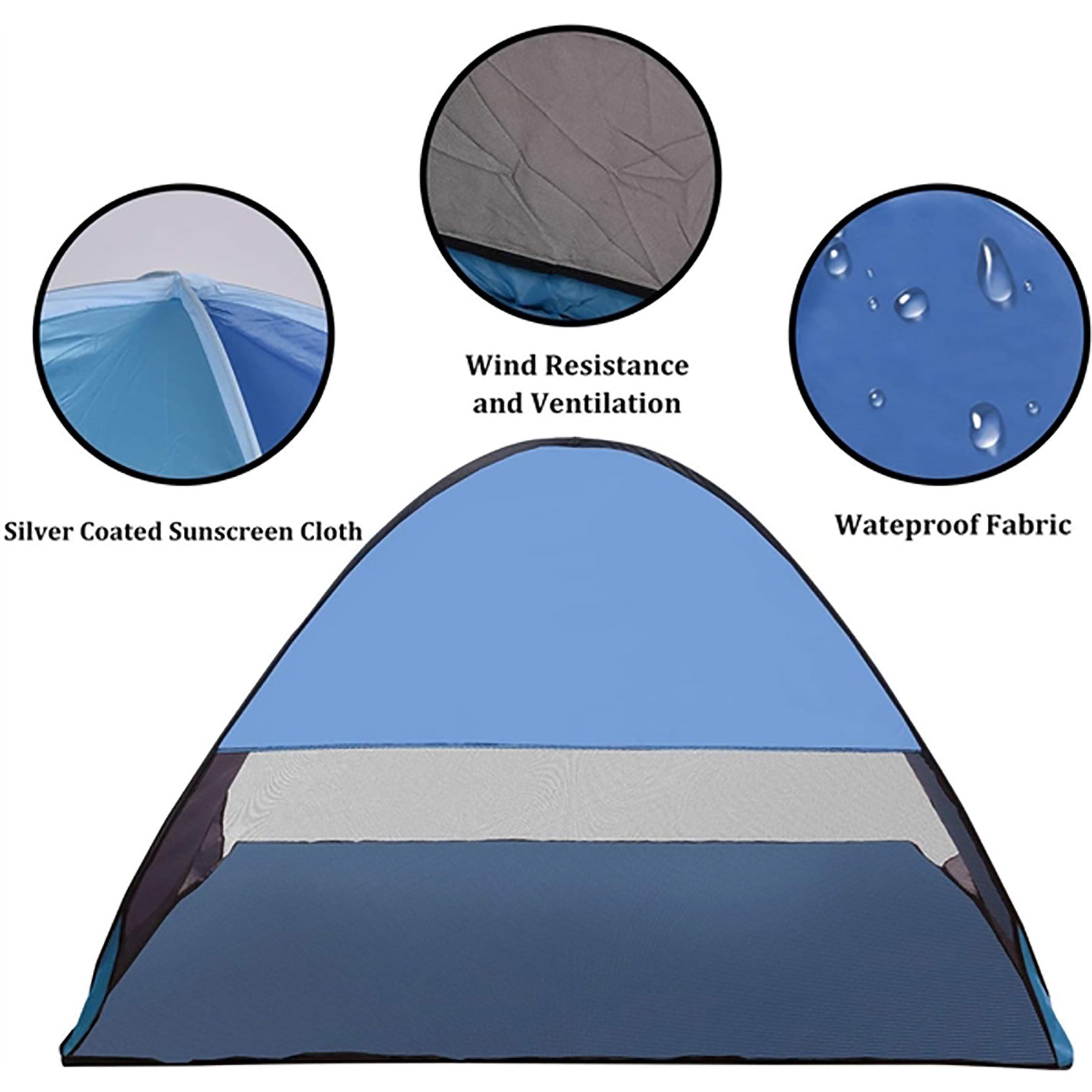 This kind of sunshade tent is suitable for 3-4 people and can be used as an awning, beach hut, beach umbrella or sunshade tent. It can provide cool all day beach sunshade when relaxing in parks, lakes, camping, beaches, hiking, fishing or weekend travel, sports events, music festivals or backyard. 78.74″ L x 78.74″ W x 51.18″ H